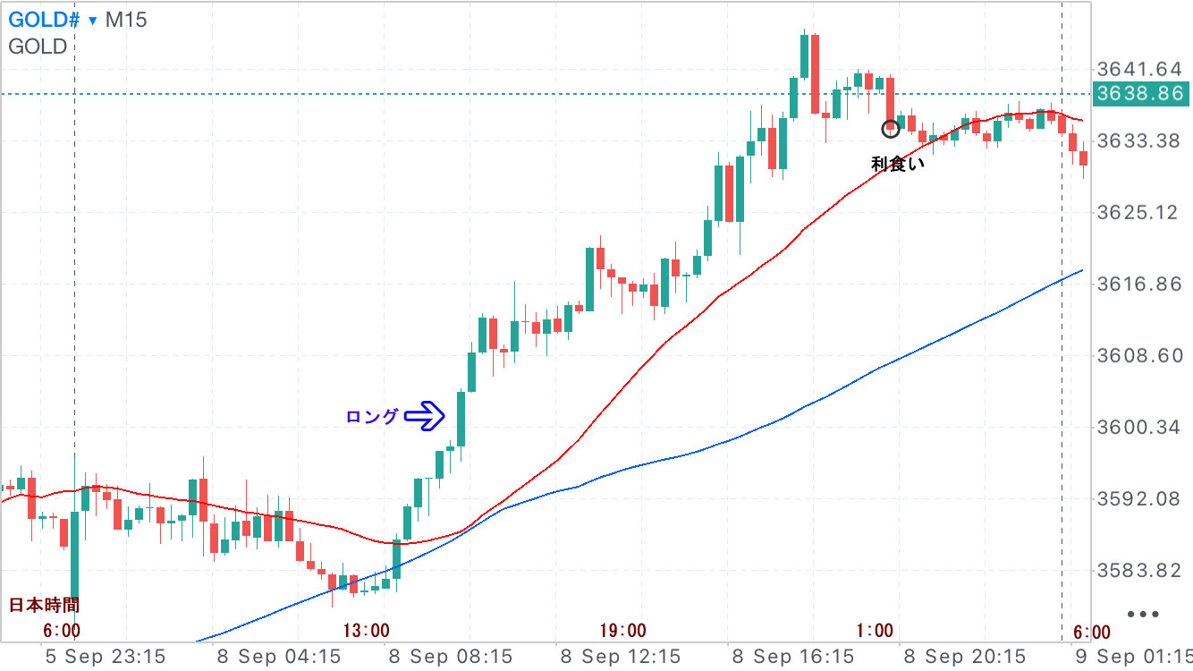 9/8(月)GOLD +327.1 pips 獲得!